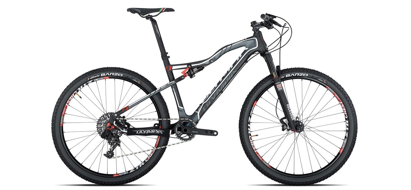 Desenvolvido através de uma parceria técnica com Scapin, Bullet foi introduzido para a 27,5 ". Os dropouts são anodizados e protegido por placas integradas. O design inovador e ousado desta bicicleta integra e praticamente esconde a suspensão traseira. O quadro Bullet é montado com componentes mais recentes de geração e soluções dedicadas para uso extremo.