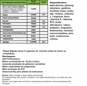 Periodo ideal para a toma: 1 hora antes do esforço.