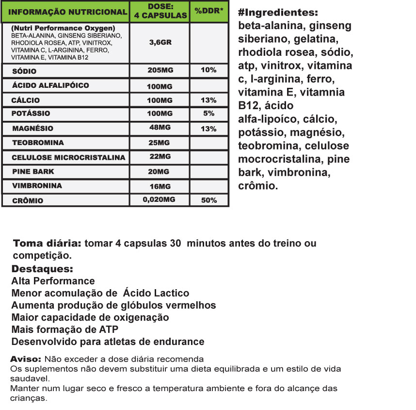 Periodo ideal para a toma: 1 hora antes do esforço.